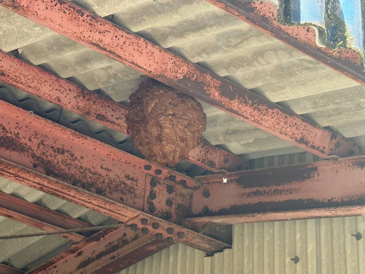 下で作業をしてたらスズメバチがいっぱい飛び出したので上を見ると巣が出来ていて全然気が付かなかったとの事でした。
