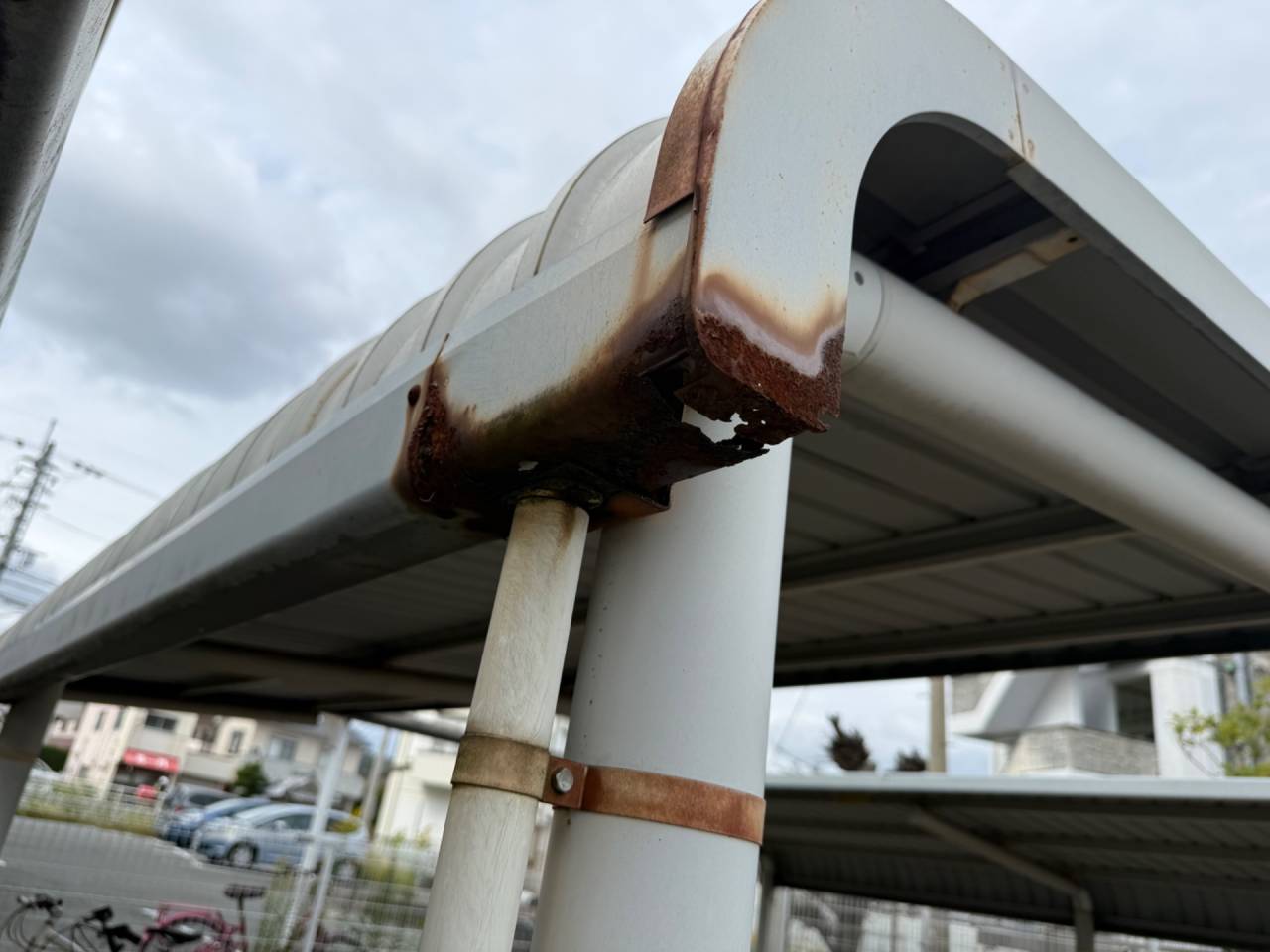 駐輪場の軒樋部分が錆びてきてボロボロになり千切れて落ちてしまう前に修繕したいとの事でした。