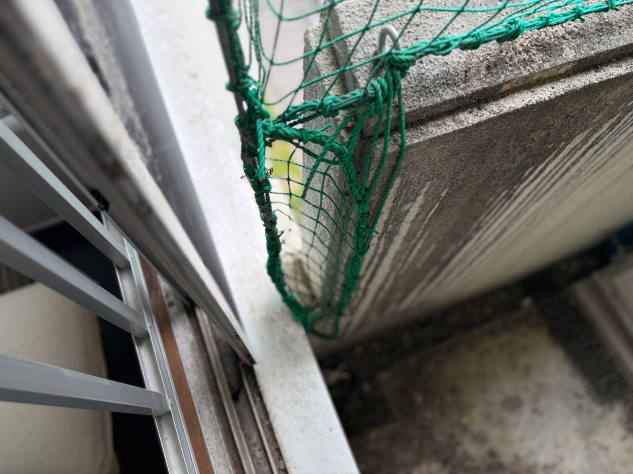 既存の鳩よけネットもありましたが業者さんの仕事が悪く隙間だらけで入りたい放題になってましたので一度ネットの補修のご提案をさせて頂きました。